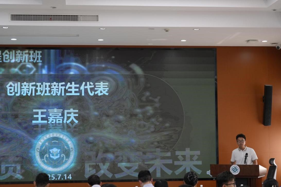 2023级创新班的优秀学生代表王同心发言,她结合自己在创新班的求学经历,向在场师生分享了这段学习生活中积累的珍贵经验与深刻感悟�