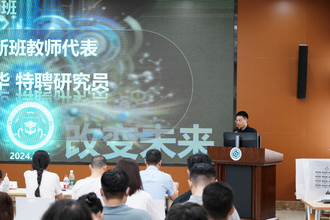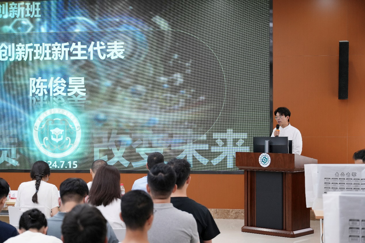 在接下来的环节中�2023级创新班新生代表陈俊昊以及教师代表张伟华特聘研究员相继发言,他们分别从学生与教师的角度表达了对创新班未来发展的期待与信心�