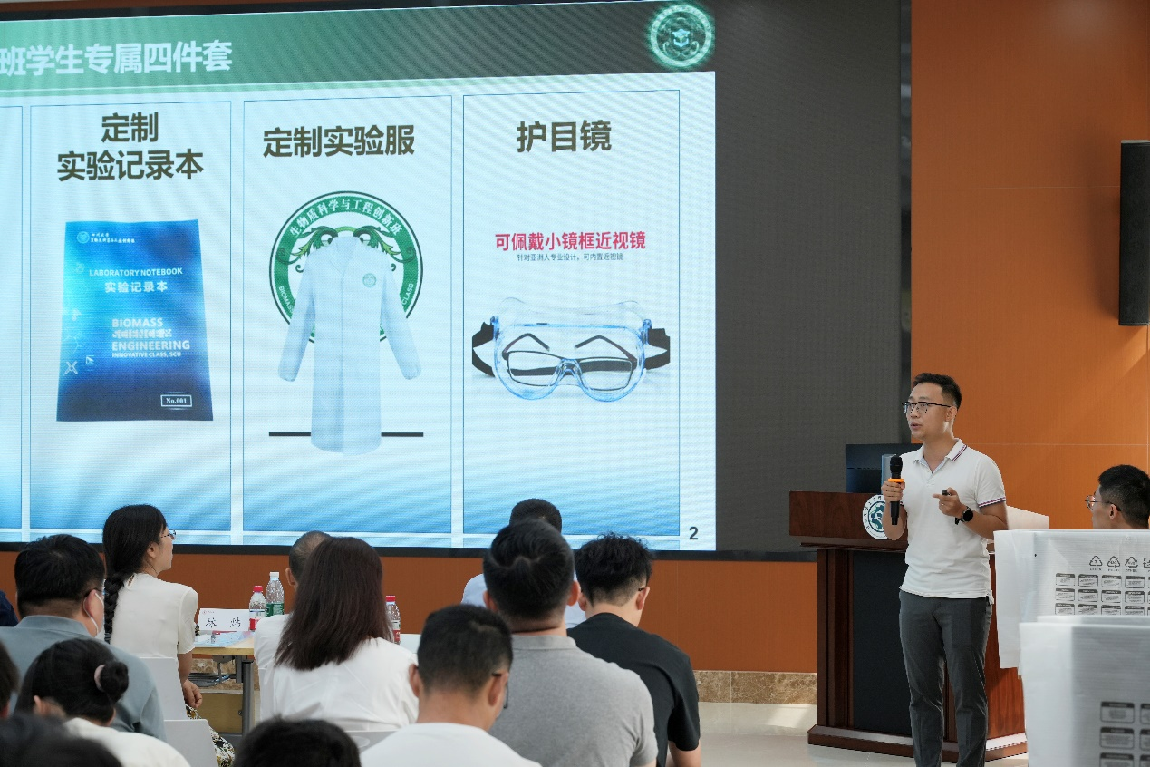 紧接着,创新班名誉班主任石碧院士发表了寄语。石院士站在国家重大战略需求的高度,深刻阐述了创新班成立的深远意义,并详细描绘了其定位与发展蓝图。他强调,生物质科学是当前国家双碳战略下的前沿热点,也是全球科学家竞相探索的领域。学院正是抓住了这一历史机遇,依托雄厚的专业与学科基础,创立了生物质科学与工程创新班,积极响应新工科发展的时代呼唤。石院士鼓励同学们珍惜这一跨学科融合的宝贵平台,勇于探索,敢于创新,用自己的智慧和汗水书写精彩人生�