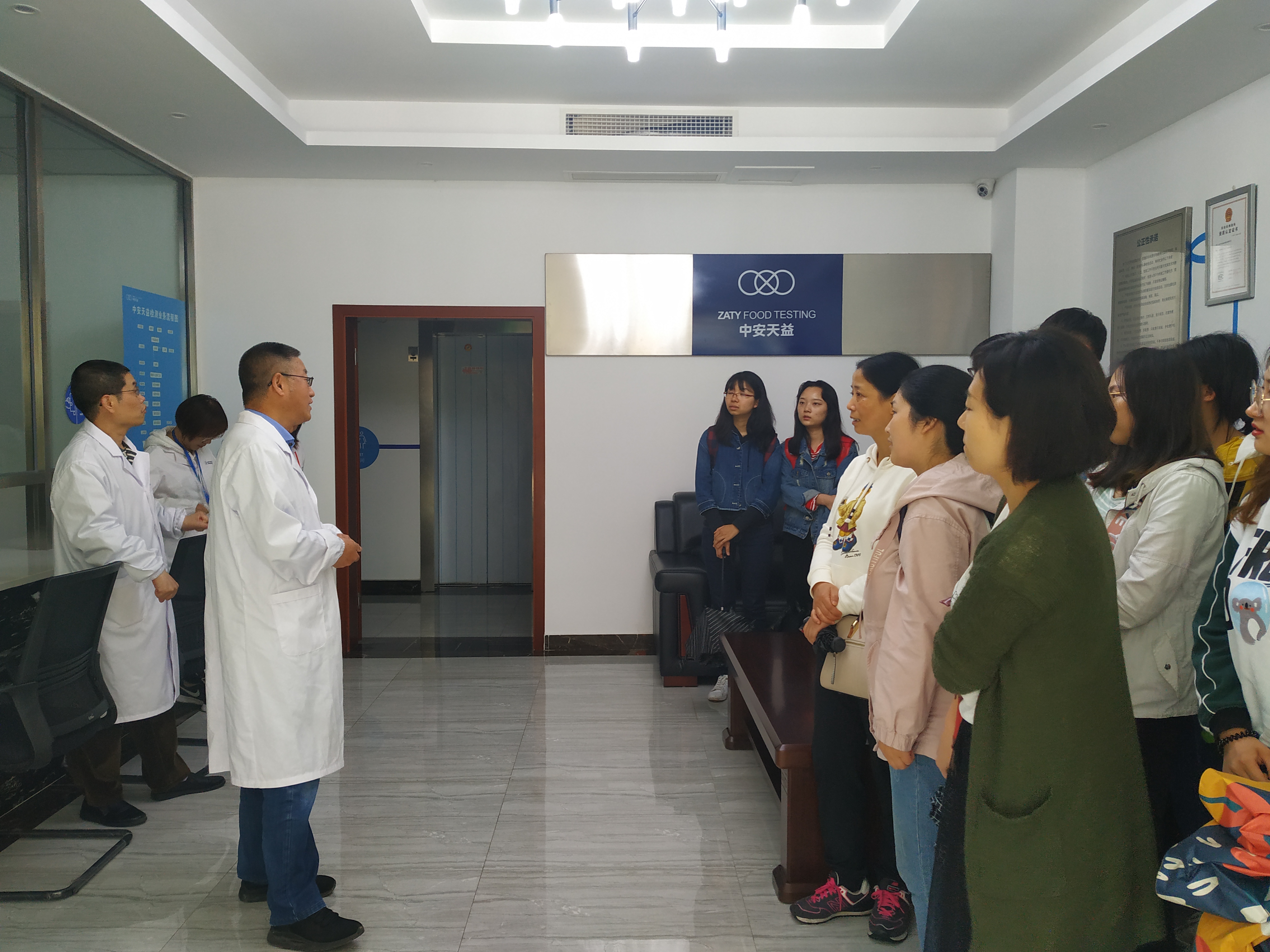 师生一行首先来到四川中安天益检测科技有限公司,参观其有机检测实验室,无机检测实验室、微生物检测实验室及常规理化检测实验室,并详细了解各种仪器的工作原理、使用方法及其在食品行业中的应用。其后参观四川冰源食品有限公司,结合该公司瓶装罐装饮用水、茶饮料及其他饮料的生产工艺流程,对食品生产通用卫生规范进行学习。