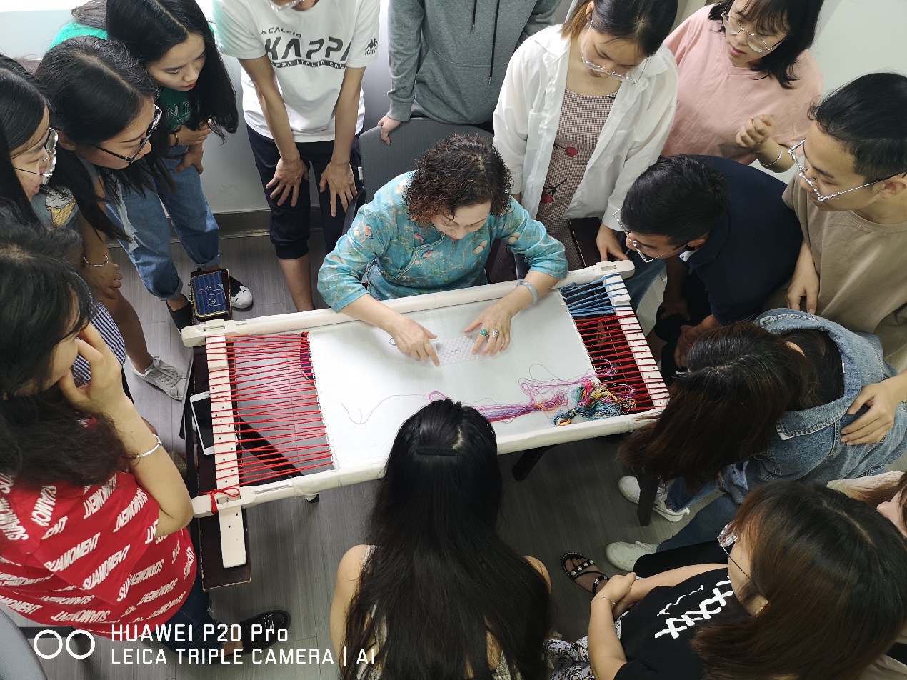 本次班会邀请了四川省蜀绣“非遗”传承大师吴玉英女士亲临现场,为同学们现场讲解了蜀绣衣锦纹针的历史及特点,并现场演示了蜀绣衣锦纹的刺绣针法。同学们对蜀绣这一“非遗”传承表现出了极大的热情,现场气氛热烈,纷纷体验了衣锦纹针法的刺绣过程,吴老师对同学们进行了一一指导。