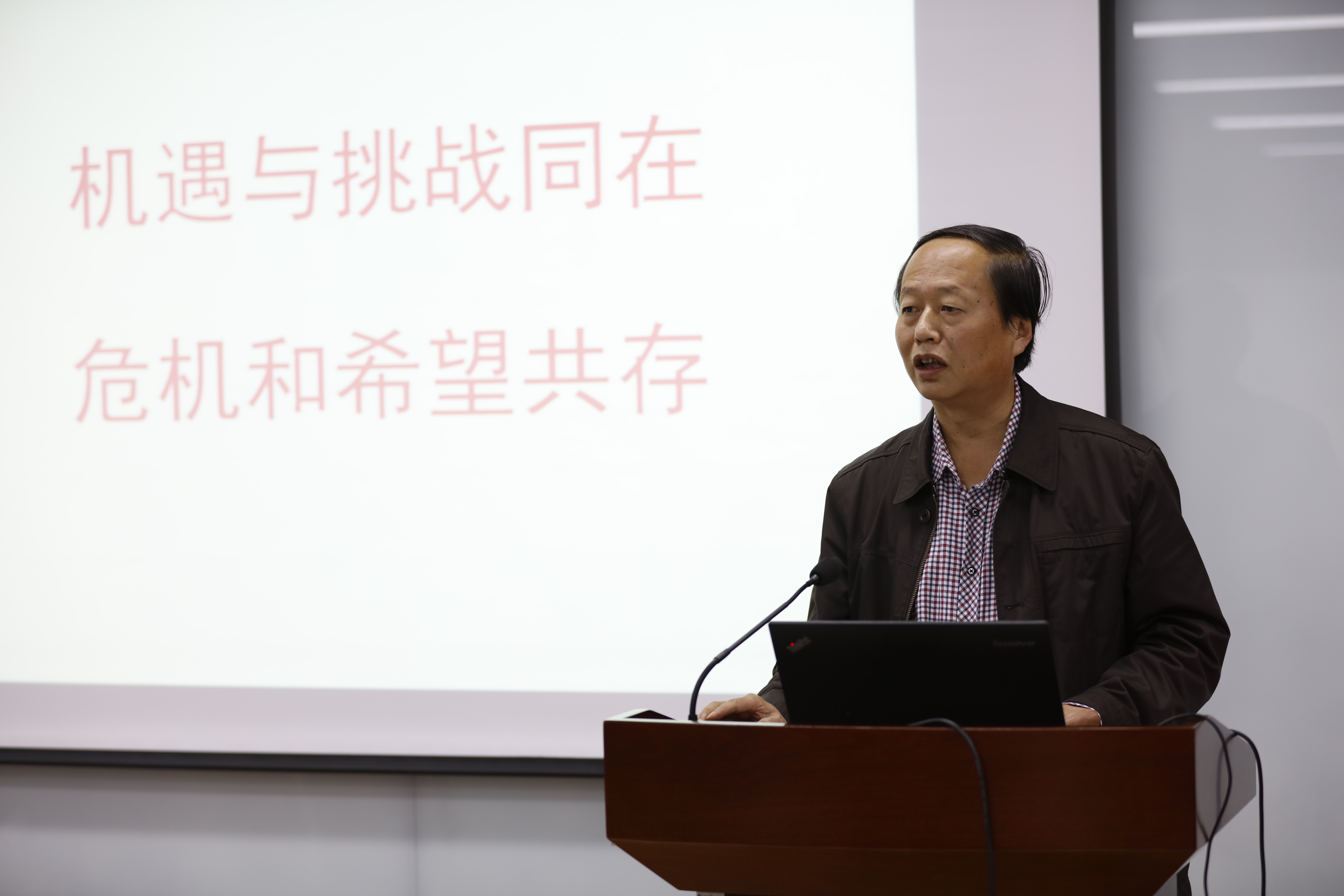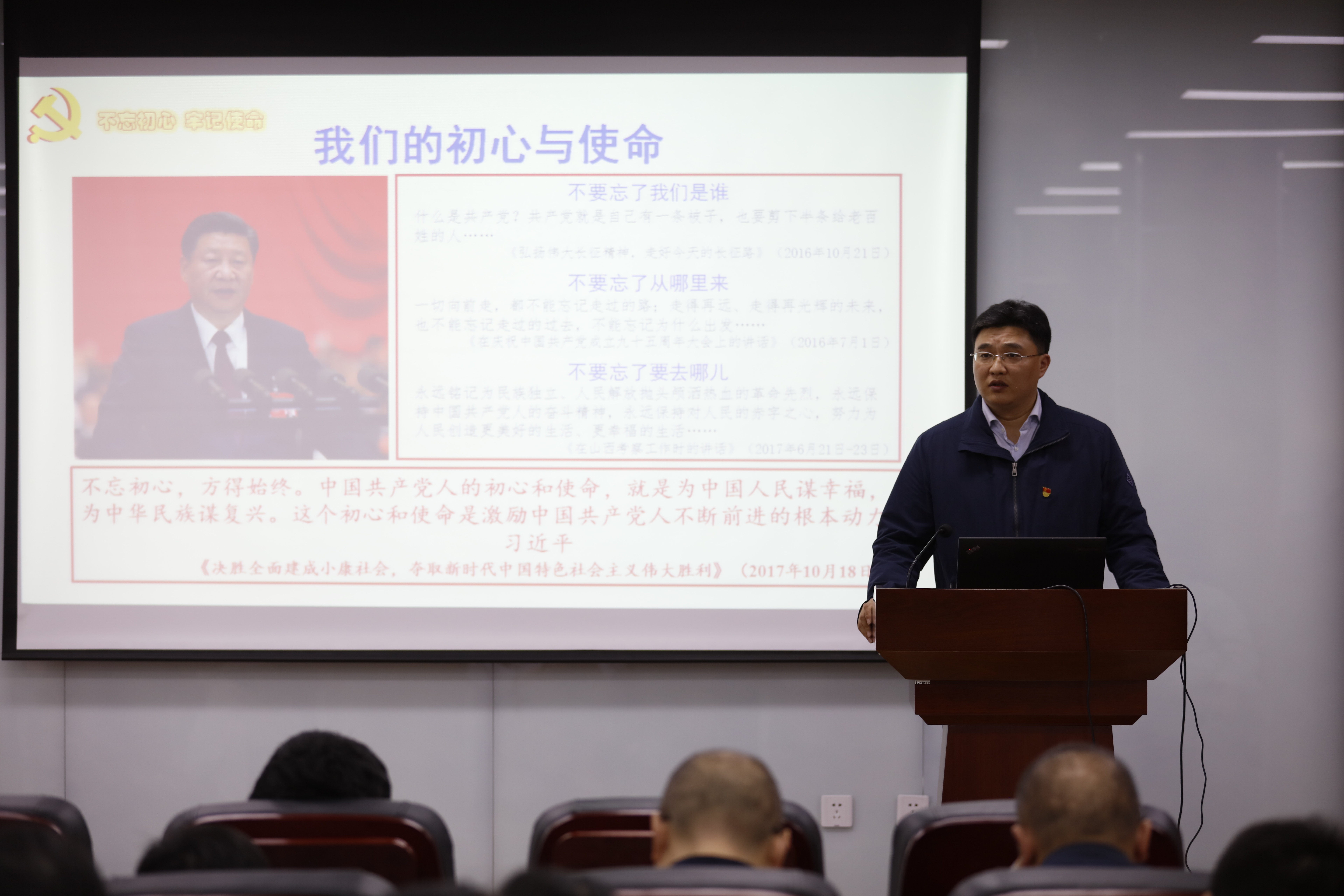 刘晓虎书记以《不忘初心 牢记使命——以时代精神为引领 加快一流学院建设步伐》为题,围绕“对主题教育的认识”、“我们的初心与使命”、“调研检视到的问题”、“整改方向与举措”等四个方面,分别从对主题教育的认识理解及学习感受、共产党人的初心和使命、当前调研检视到的4个大类(党的建设、能力与作风、核心竞争力打造、师生获得感幸福感安全感)共20条问题、整改的20项举措等为大家进行授课讲解。