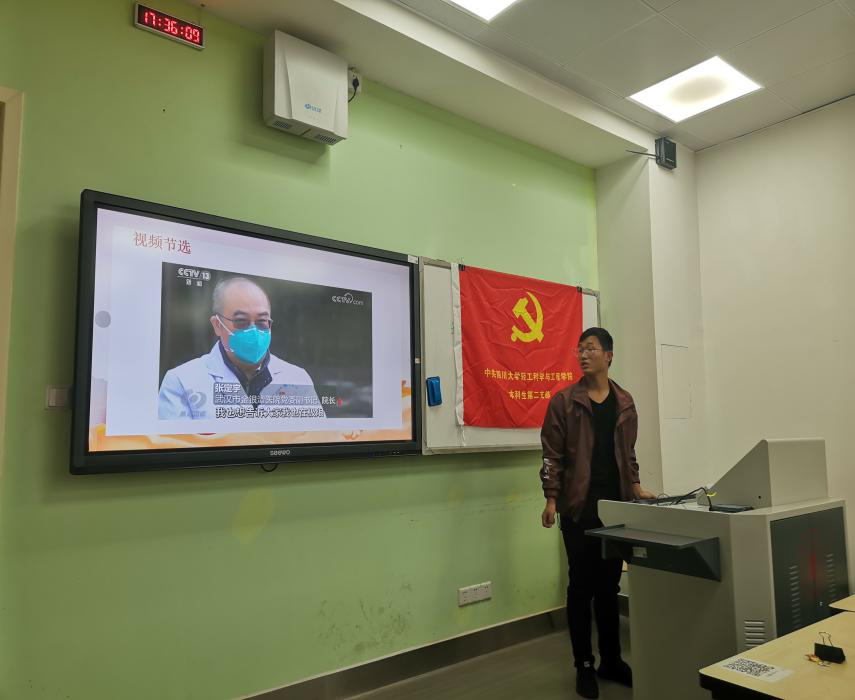 本科生第二党支部围绕新冠肺炎疫情中党员群体先进事迹,在基教A302进行一场“劳动育人、筑梦青春、未来可期”主题党日活动。出席活动有支部全体党员和学院党政办李艳老师,活动由支部书记杨维同志主持。
