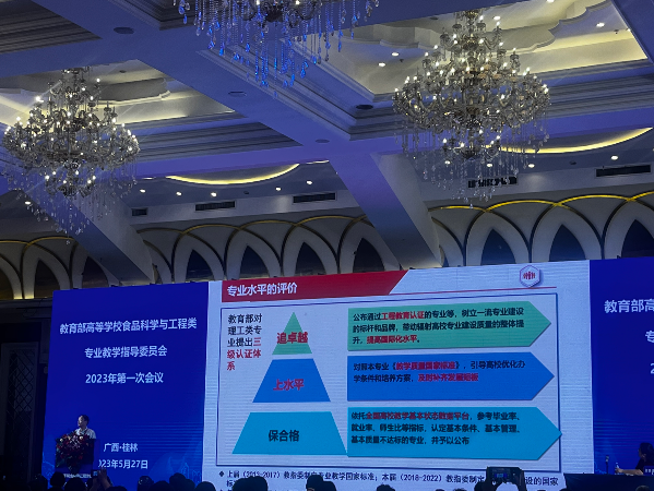 2023年5月27日,教育部高等学校食品科学与工程类专业教学指导委员会2023年第一次会议暨教学研讨会在广西桂林召开。我院食品工程系何强、迟原龙、吕远平、段飞霞和董怡等5位老师应邀出席大会,就“国家级一流建设工程与高等教育数字化建设”及“食品科学与工程专业一流本科专业建设标准”等主要议题积极参与大会的教学研讨;并与全国食品专业的相关兄弟院校在专业自评过程关键问题、高质量食品科学与工程专业建设、课程思政的专业课程实践等方面进行了深入交流与探讨。此次会议对于我院食品科学与工程专业国家级一流专业建设、工程认证复评工作的推进具有重要意义。