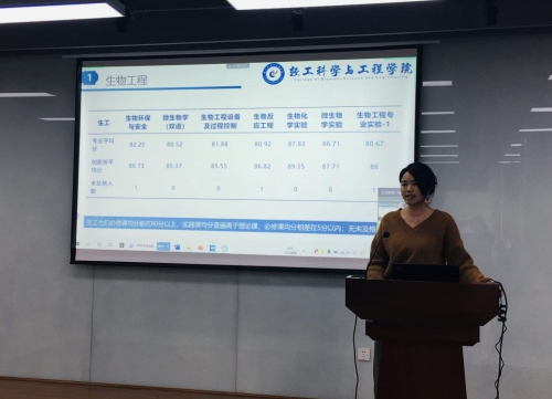 2018级辅导员杨维老师、2019级辅导员贺婷老师分别从普通班与创新班比较、创新班内不同专业比较、英语四六级成绩等方面向与会人员做了创新班学生成绩分析。