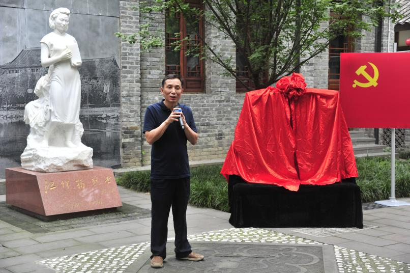 首先�四川大学档案馆(校史办公室)副主任冯兵教授致辞。他对四川大学轻工科学与工程学院党委及纺织服装党支部表达了感谢,对我院�用好红色资源、赓续红色血脉、讲好红色故事”表示高度赞扬,对艺术创作传递红色思想的创新形式表示肯定,他认为作品《“秀”红旗》与江姐纪念馆建馆主旨相契合,是科学性、政治性、艺术性的共同体现,也是“不忘初心,牢记使命”主题精神在立德树人教育事业中的体现�