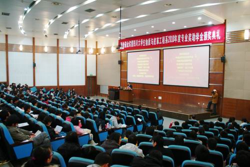 生物质与皮革工程系2010年度专业奖助学金获奖名单。在隆重的颁奖音乐中,学院领导及企业代表为获奖同学颁发了证书并合影留念。最后,轻纺与食品学院2008级本科生获奖同学代表杨飞发表了获奖感言,她表示今后会更加努力,用自己的实际行动来回馈企业以及社会各界对NT动漫