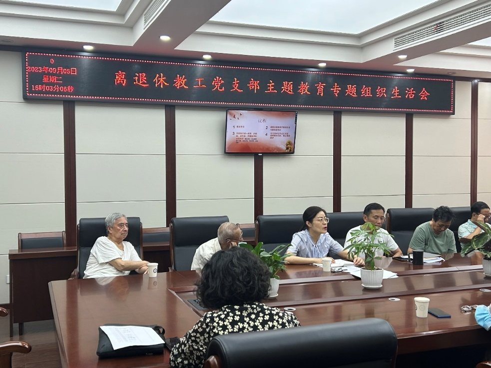 2023年9月5日下午,离退休教工党支部在纺工附楼205会议室召开学习贯彻习近平新时代中国特色社会主义思想主题教育专题组织生活会。会议由党支部书记李慧同志主持,学院党委书记李天富同志参加了本次会议。