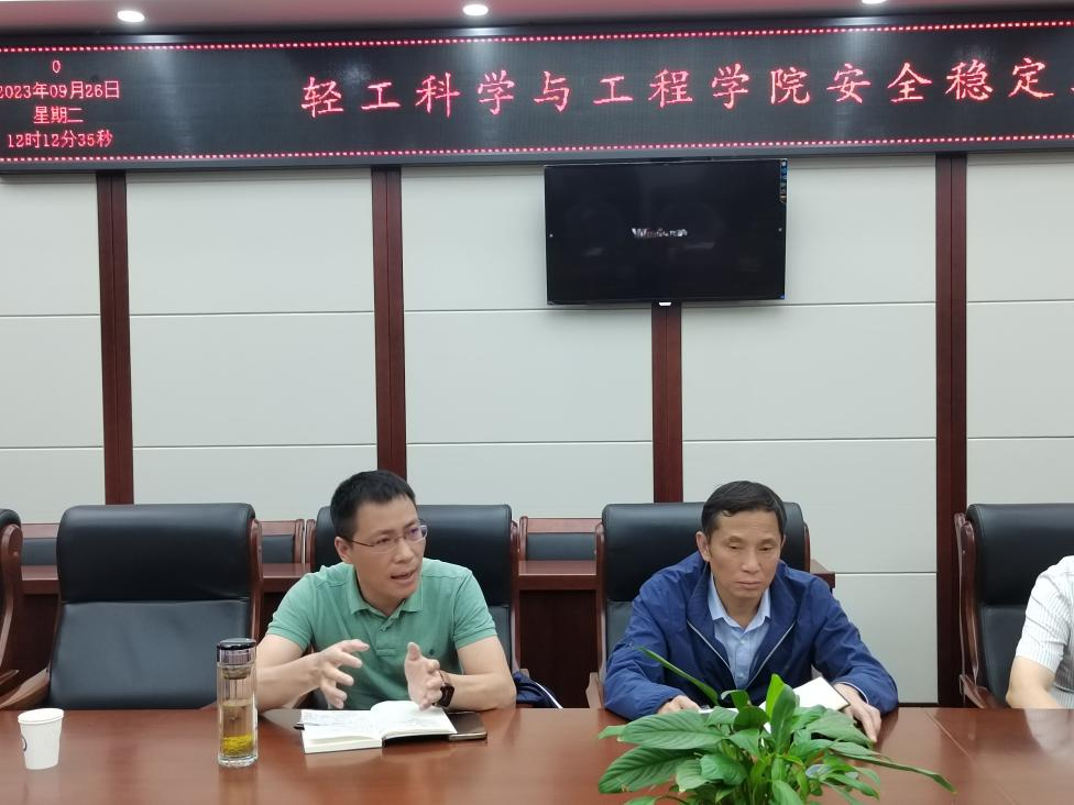 2023年9月26日上午,学院在纺工附楼205会议室召开安全稳定工作会。学院班子成员、教工党支部书记、学生科、实验室等相关科室负责人等参加会议。会议由学院党委李天富书记主持。