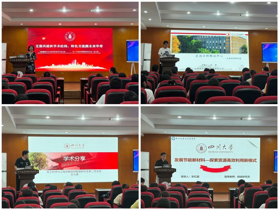 此外,纺织服装研究生党支部书记姜珊同志向分测中心的党员同志们介绍了本支部的基本情况和课题组的主要研究方向,并邀请了本支部优秀党员王九澳同志和彭红超同志分别就自己的研究方向和学术成果与大家展开了充分的交流讨论。他们分享了自己课题组的研究方向、进展和成果,促进了学术思想的碰撞和学科交叉的融合,帮助大家激发更多的创新思维和学术灵感。在多元思想碰撞与交融的过程中,学生们得以拓宽学术视野,培养创新思维,这对于推动学科发展、提升整体学术水平具有重要意义。同时,优秀党员同志们的积极参与和分享,也为全体成员树立了学习的榜样。他们的经验、智慧和热情,深深鼓舞着每一位同志在学术领域不断追求进步,勇于探索未知。