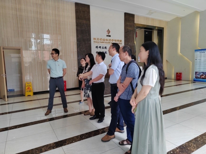 首先,省纺科院科研生产党支部书记樊武厚带领我院教师前往省纺科院下属纺织化学研究所、纤维科学与工程研究所、四川益欣科技有限责任公司科研实验室进行了参观学习。省纺科院副总经理康建平陪同并详细介绍了省纺科院的生产经营、科研成果及应用转化的情况�