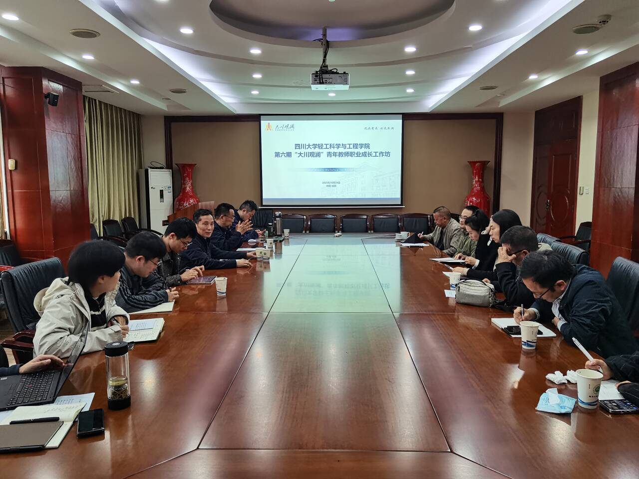 在皮革楼209会议室举办第六期“大川观澜”青年教师职业成长工作坊。学院班子成员、教授委员会代表、国家高层次人才代表、部分青年教师参会。学院党委李天富书记主持会议。