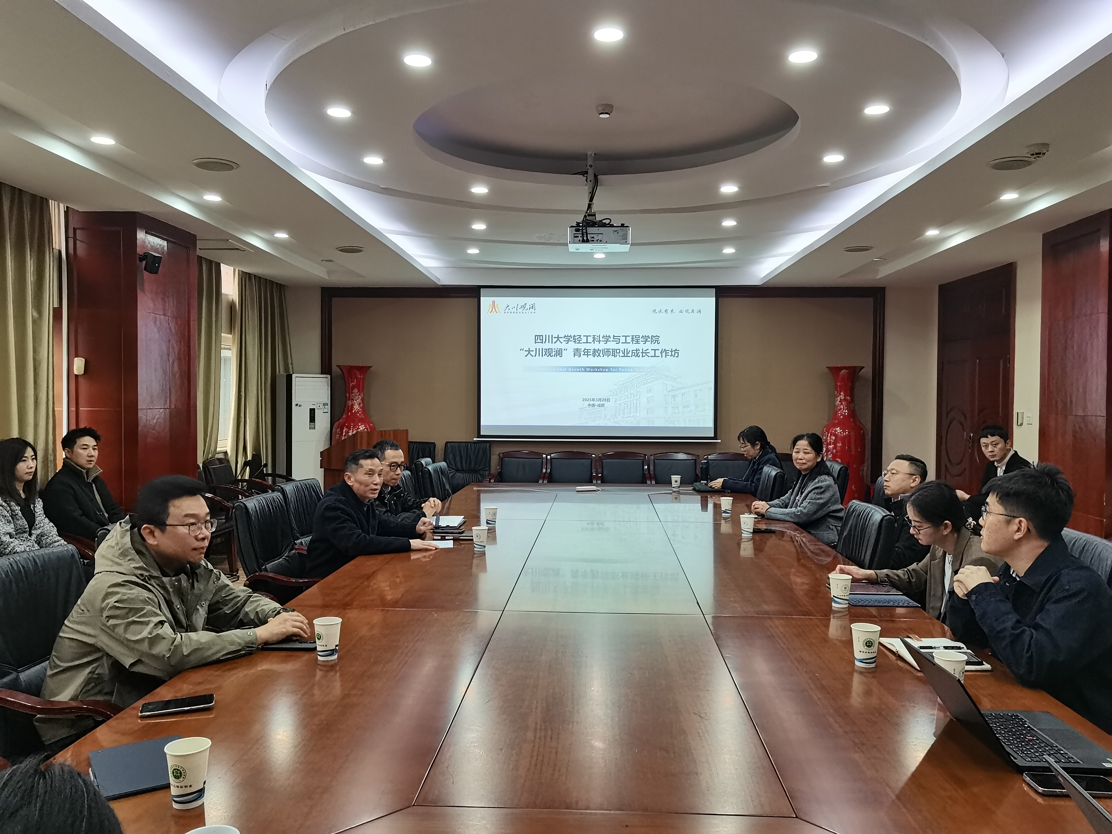 在皮革楼209会议室成功举办第三期“大川观澜”青年教师职业成长工作坊。学院班子成员、教授委员会代表、部分青年教师参会。学院党委李天富书记主持并讲话。