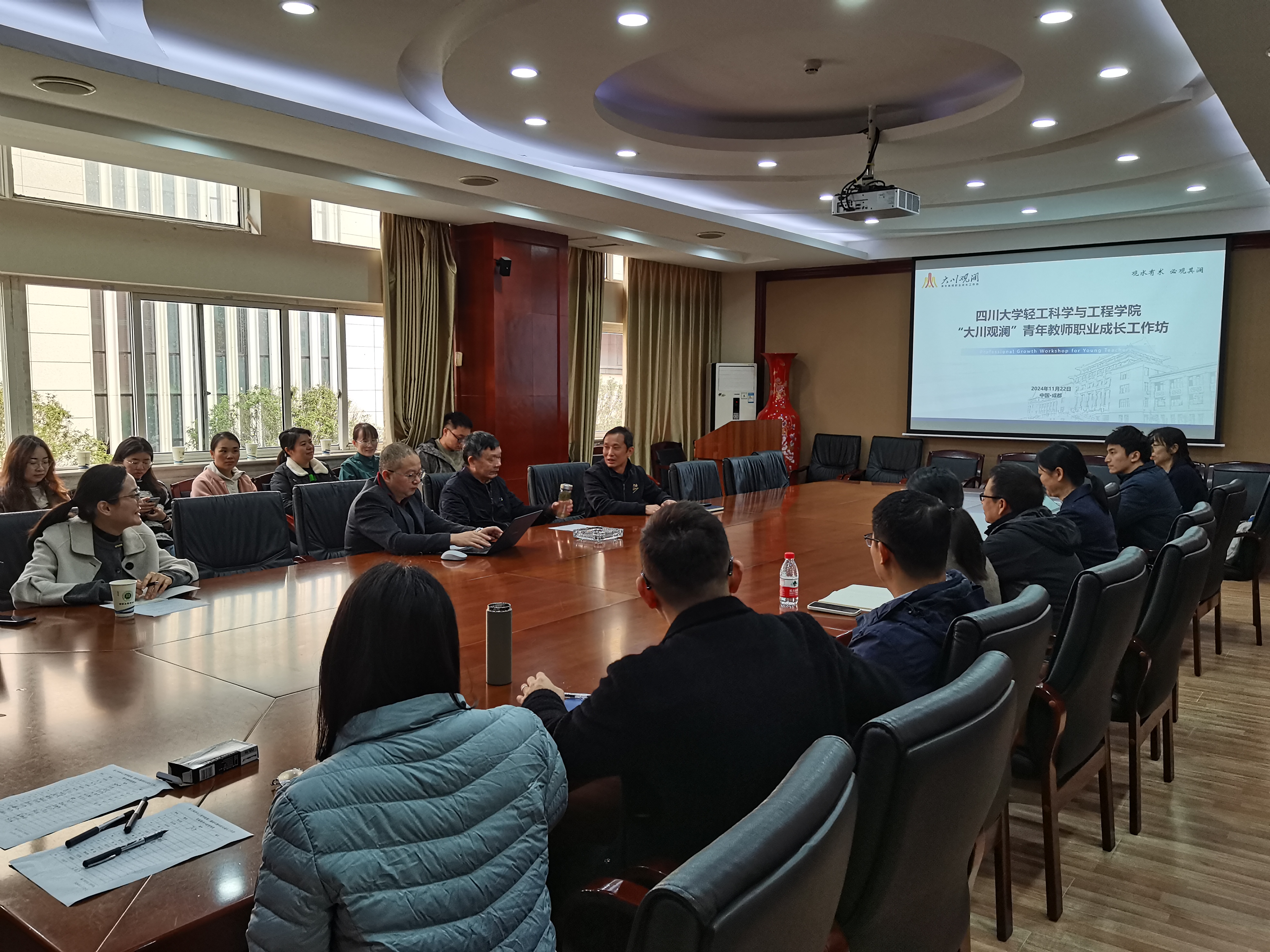 在皮革楼209会议室成功举办第二期“大川观澜”青年教师职业成长工作坊。学院班子成员、教授委员会代表、部分青年教师参会,人事处(党委教师工作部)师德师风建设科杜金霞副科长到场指导。本次工作坊由学院党委李天富书记主持。