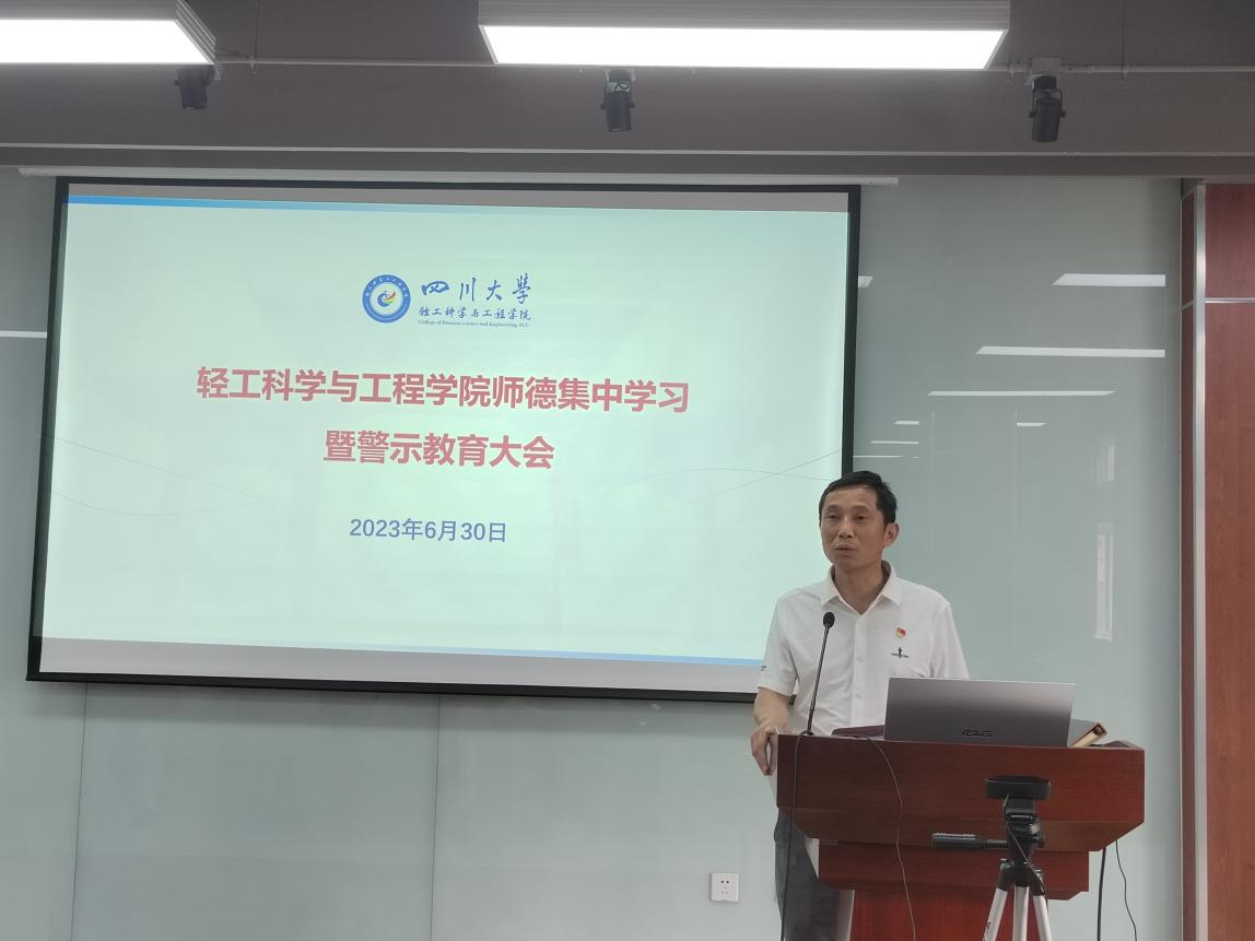 2023年6月30日上午,NT动漫 在皮革楼215报告厅召开全院教职工大会暨师德集中学习警示教育大会。本次大会由学院党委李天富书记主持。