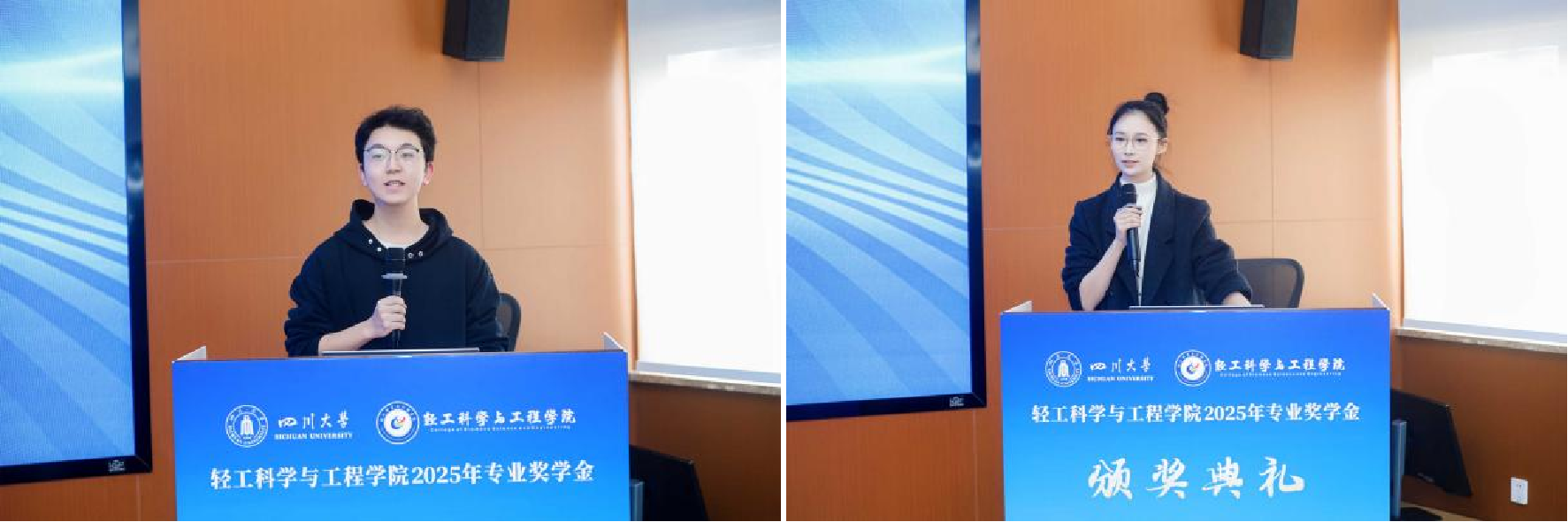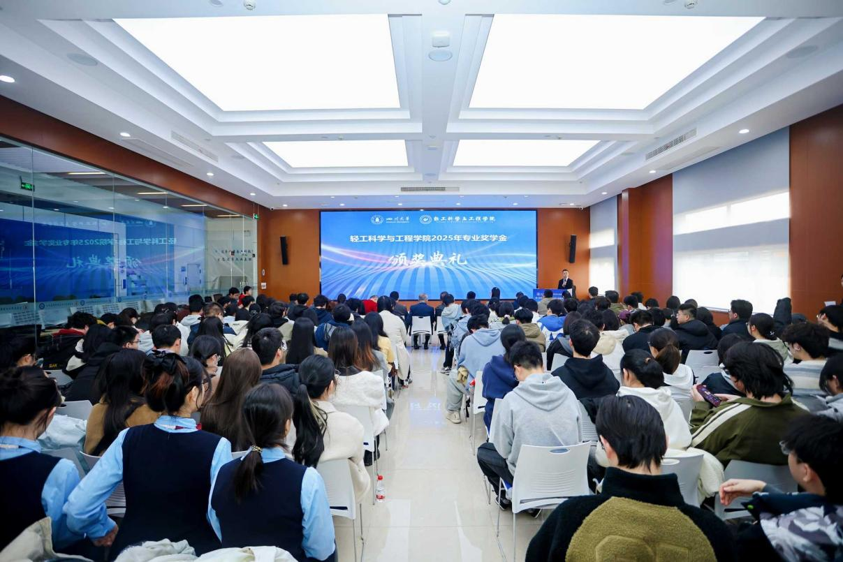 彭必雨院长宣读《轻工科学与工程学院2025年专业奖学金表彰决定》。在激昂欢快的颁奖音乐中,各位嘉宾与学院领导依次为获奖同学颁发荣誉证书,并亲切合影留念�