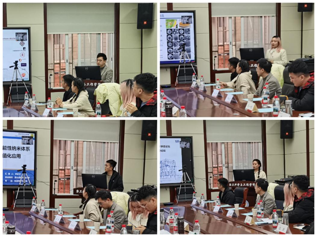 第十三届全球青年学者论坛轻工技术与工程学科分论坛。会议通过线上线下相结合的方式,邀请来自海内外的青年学者与学院专家进行沟通交流。学院班子成员、教授委员会代表、各系所负责人、青年教师代表线下参会。香港理工大学博士后程骋、新加坡南洋理工大学博士邓靖宇、西北农林科技大学博士李宏才、德国慕尼黑工业大学博士翁悦线下参会,其他海内外青年学者通过腾讯会议线上参会。学院党委李天富书记主持本次分论坛。